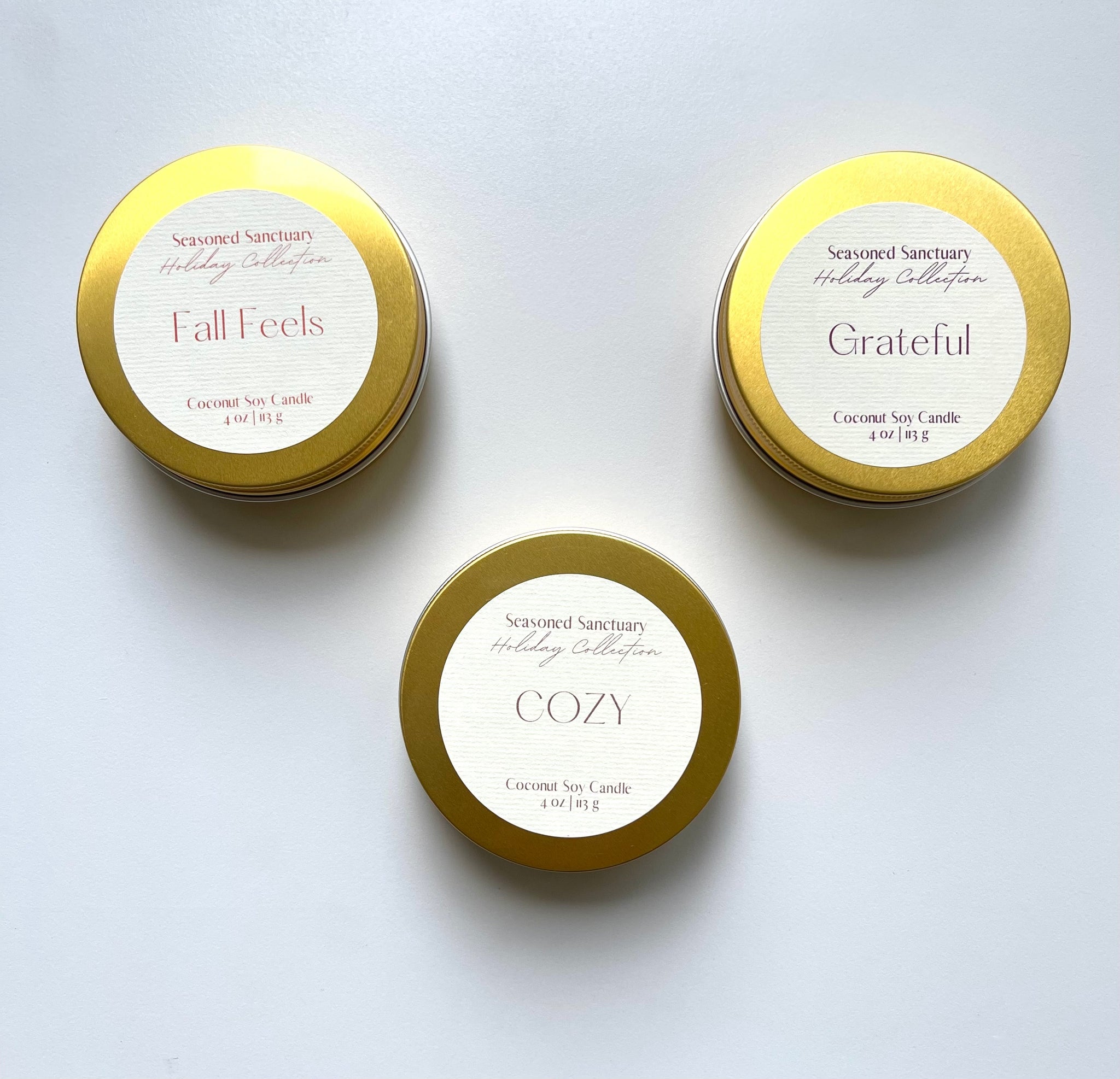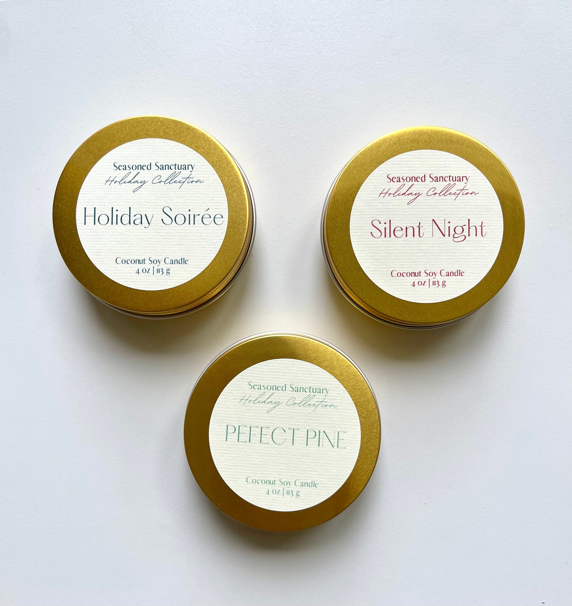 Explore the full Holiday Collection with our new 4oz mini tins. These tins are perfect for sampling the collection, gifts, taking your candles on the go, or for setting the mood in small spaces.